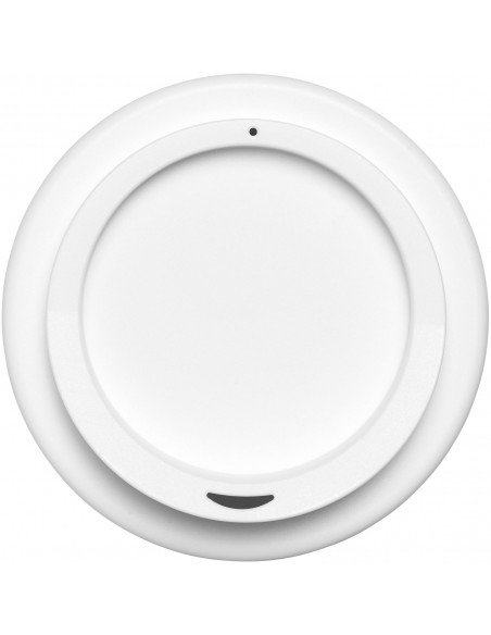Double-wall insulated tumbler with a twist-on lid and full colour wraparound design moulded to the product. The tumbler is made from a total of 65% recycled materials (recycled mug and black inner), and has a standard plastic lid. The mug is fully recyclable, and dishwasher and microwave safe. Volume capacity: 250 ml. BPA free. Packed in a home compostable bag. Made in the UK.