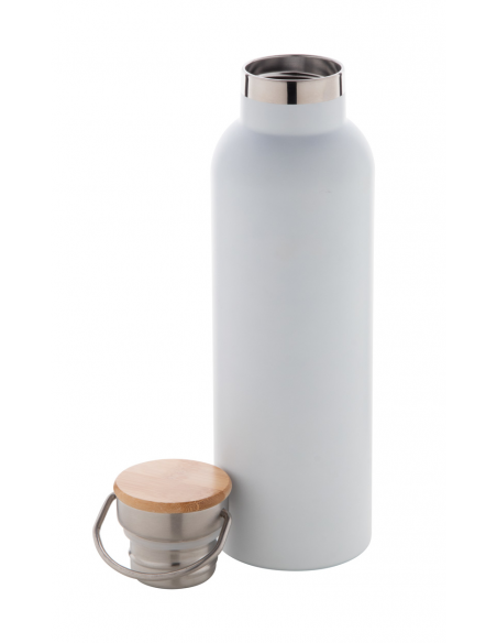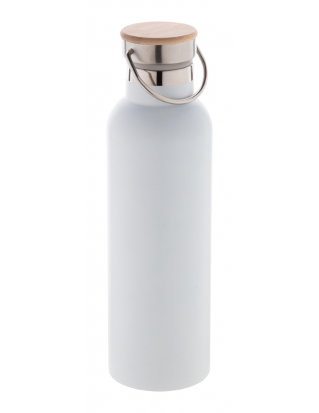 Double-wall stainless steel insulated vacuum flask with bamboo carry lid. 750 ml. Not suitable for carbonated drinks.