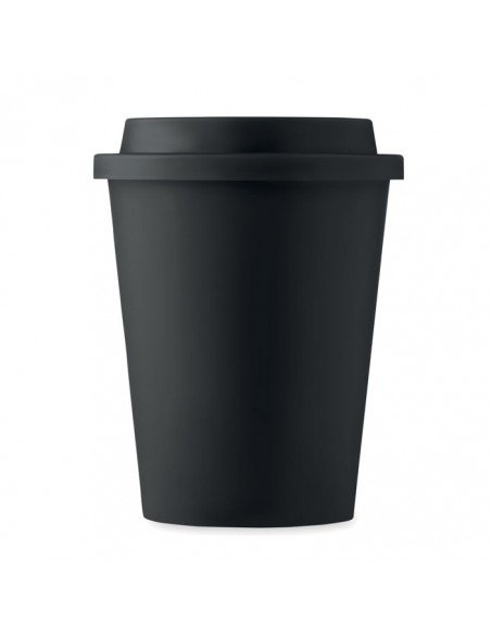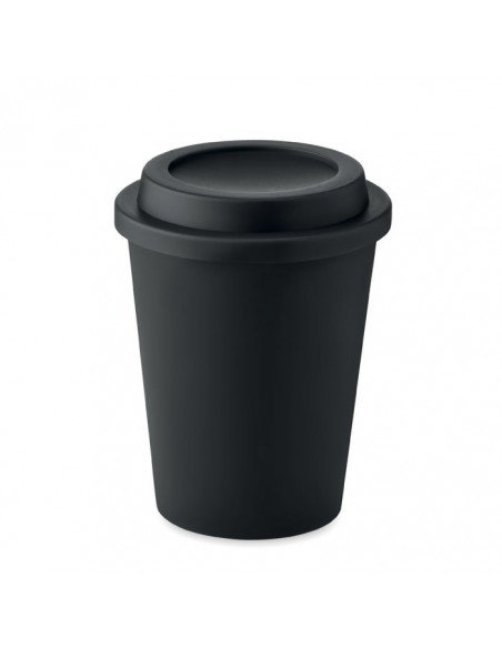 Double-wall insulated tumbler with a twist-on lid and full colour wraparound design moulded to the product. Made from 95% recycled plastic and has a black inner layer. The mug is fully recyclable, and dishwasher and microwave safe. 350 ml volume capacity and BPA free. Packed in a home compostable bag. Made in the UK.