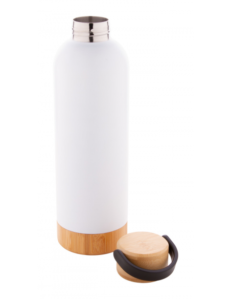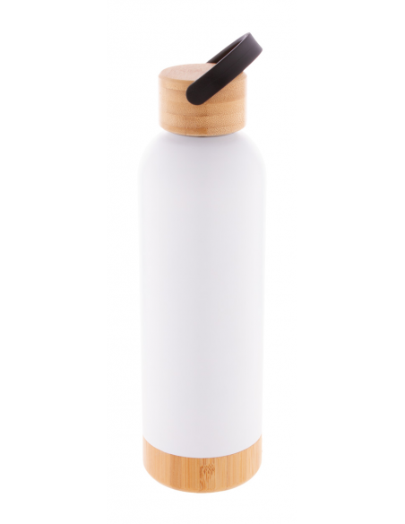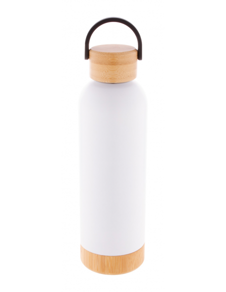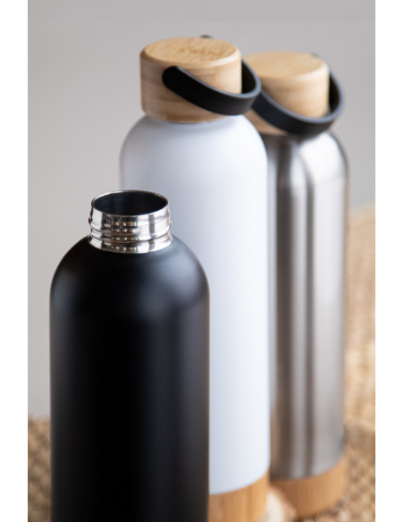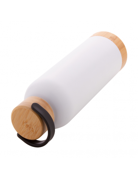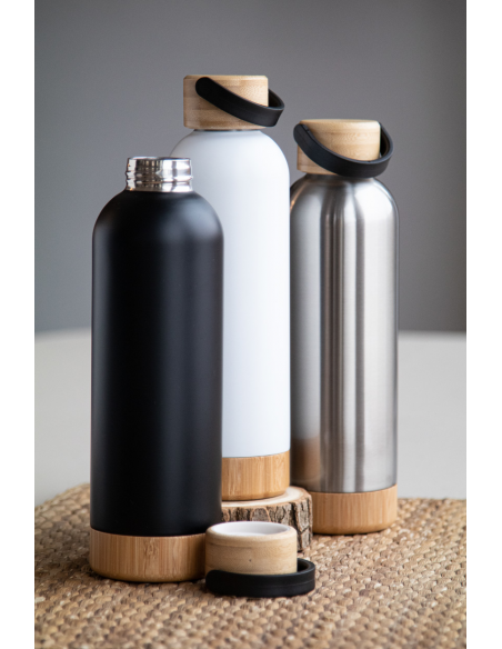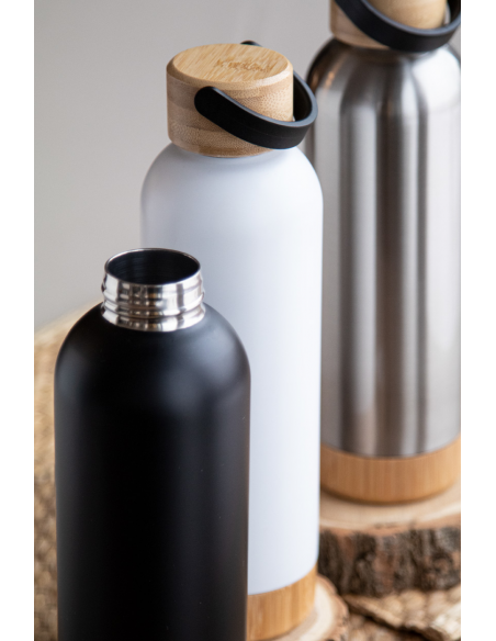 Double-wall stainless steel vacuum flask with bamboo carry lid and base, 500 ml.