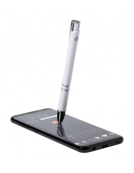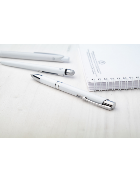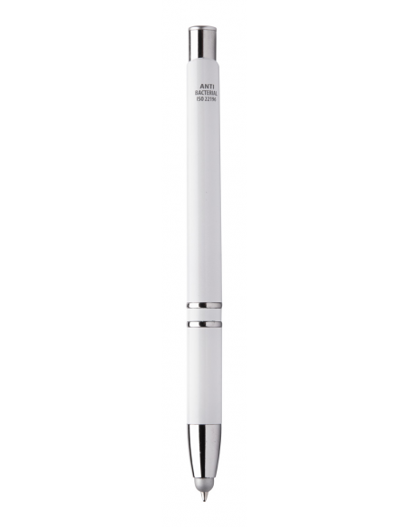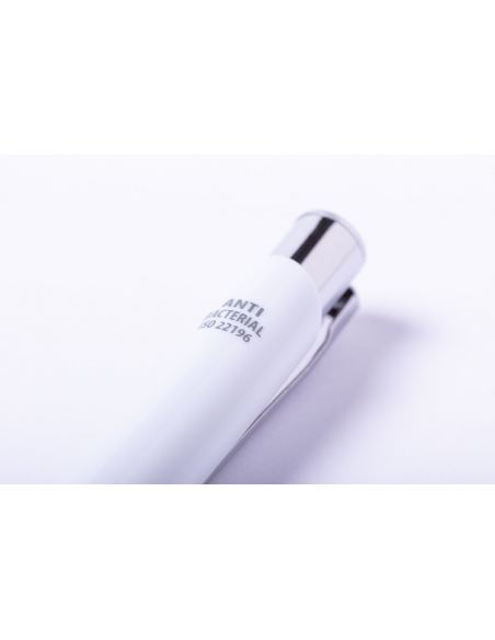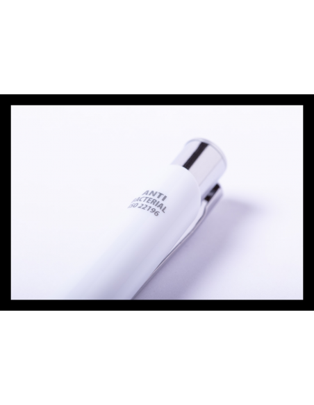 Antibacterial plastic ballpoint and touch screen pen with blue refill. ISO 22196 compliant.