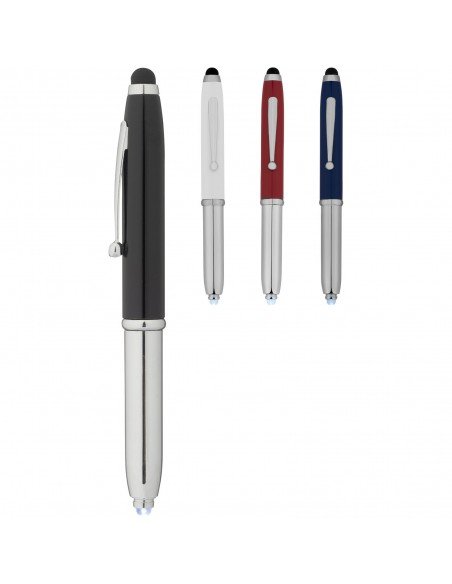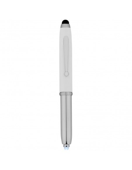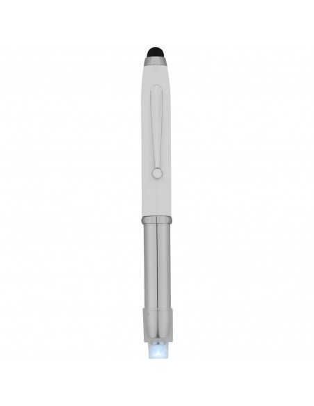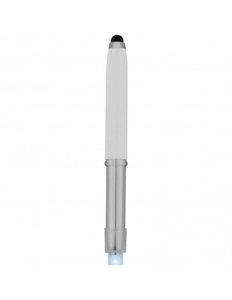 Stylus ballpoint pen with single LED flashlight and removable cap. Batteries included.