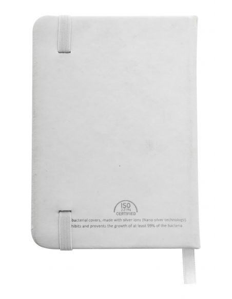 Antibacterial PU leather covered notebook with bookmark and rubber strap. With 80 blank sheets. B7 size. Contains nano silver additive preventing bacterial growth on the cover of the notebook. ISO 22196:2011 compliant.