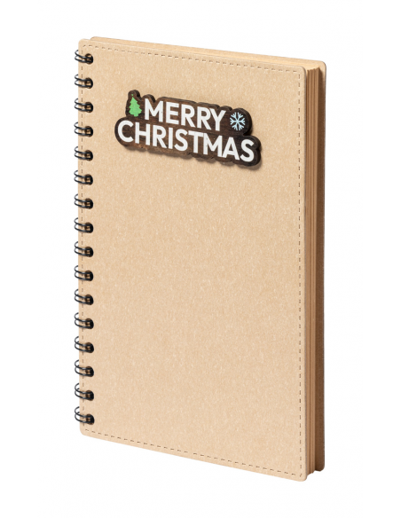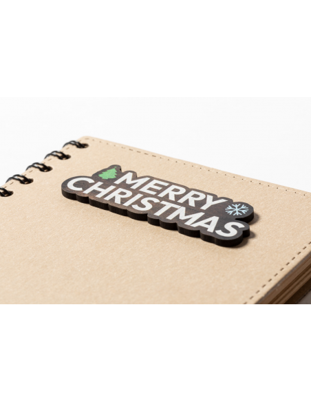 Recycled cardboard covered spiral notebook with Christmas design and 80 lined sheets in recycled paper.