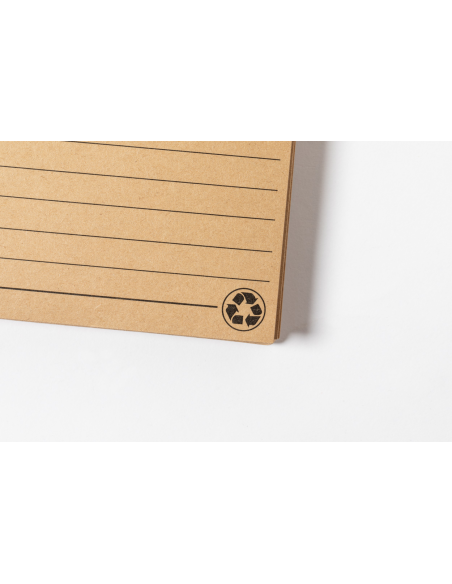 White 1/3 A4 Desk-Mate® notepad with wrap cover. Includes blank paper sheets of 80g/m2. Standard delivered with 50 sheets, also available with 25 or 100 sheets. Decoration is possible on each sheet. Sheet dimension: 99x210mm. Paper, 80 g/m2, Cardboard.