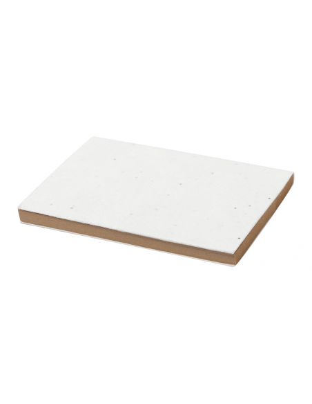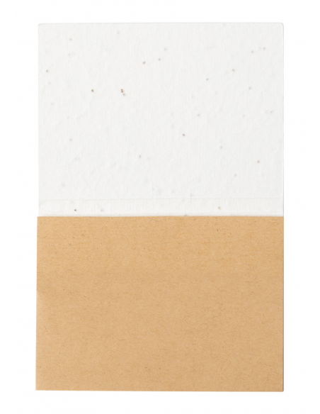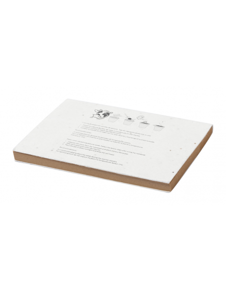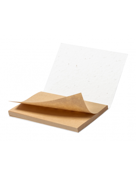 Seed paper covered recycled kraft paper sticky notepad with 50 notes. The seed paper cover contains petunia seeds in assorted colours, which can be planted by separating the cover from the notepad.