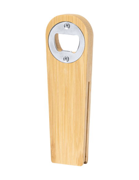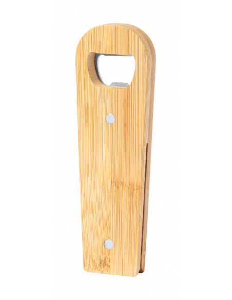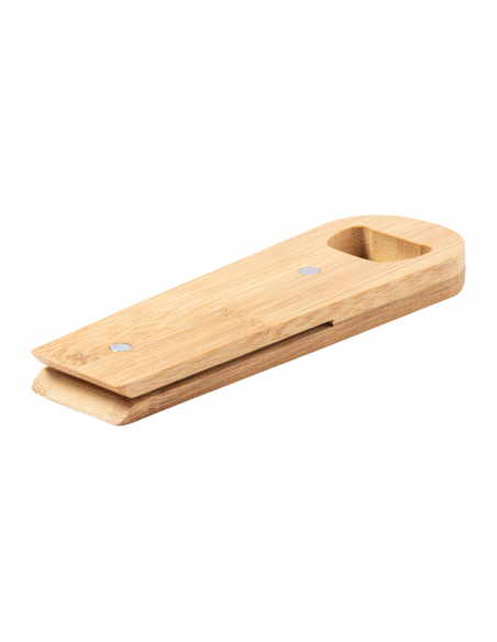 Magnetic bamboo bag sealing clip with bottle opener.