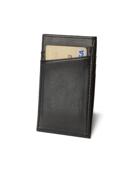 RFID blocking leather card holder with capacity for 4 cards and a compartment for bills. Supplied in a gift box.65 x 106 mm | Box: 80 x 115 x 15 mm