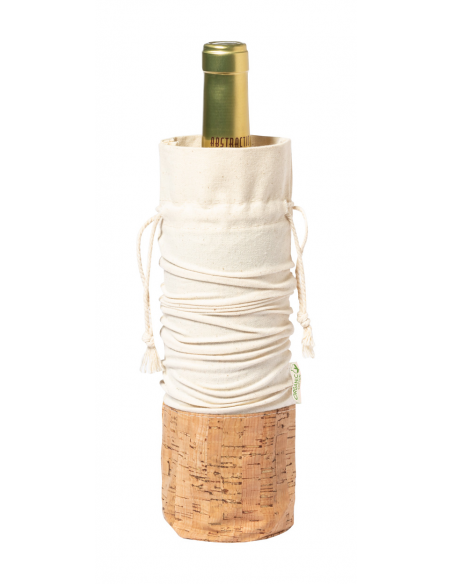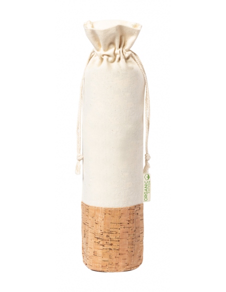 Organic cotton and natural cork drawstring gift bag for 1 wine bottle.
