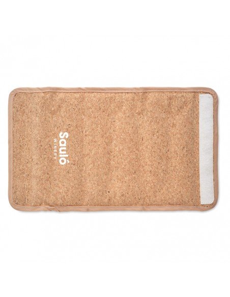 Soft wine cooler in cork wrap with PVC sheeting with gel inside. It has an adjustable hook and loop fastening.